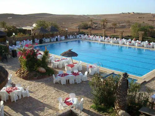 Une piscine extérieure entourée de verdure et de palmiers vous offre une oasis de fraîcheur au cœur de la chaleur désertique. Un lieu de détente incontournable pour reprendre des forces.